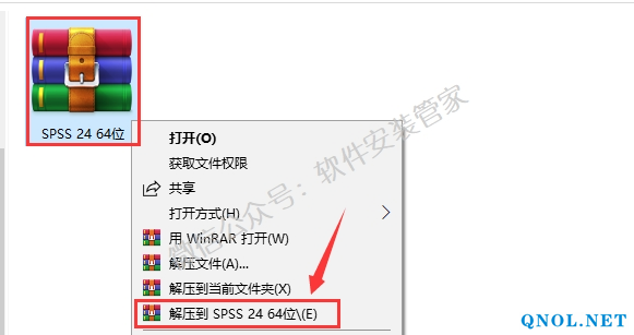 1.鼠标右击【SPSS 24 64位】压缩包选择【解压到SPSS 24 64位】。