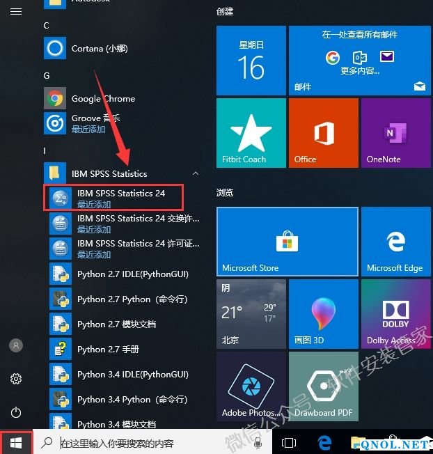 14.打开【开始菜单】,找到【IBM SPSS Statistics 24】用鼠标往桌面拖动即可创建桌面快捷方式。