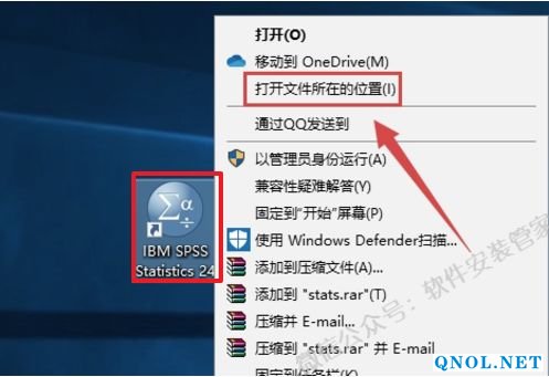 16.鼠标右击桌面【IBM SPSS Statistics 24】图标选择【打开文件所在位置】。