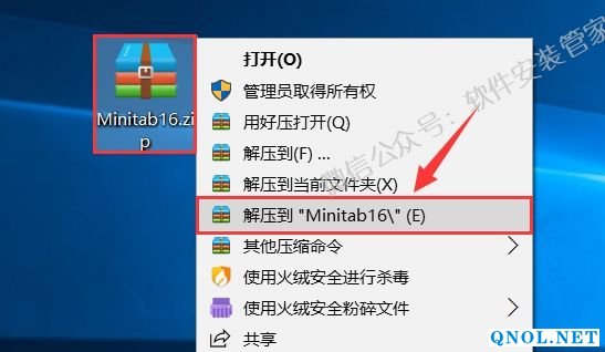 1.鼠标右击【Minitab16】压缩包选择【解压到Minitab16】。