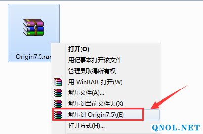 1、鼠标右击软件压缩包,选择“解压到Origin7.5”。