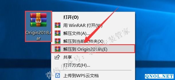 1.鼠标右击【Origin2018】压缩包选择【解压到Origin2018】。