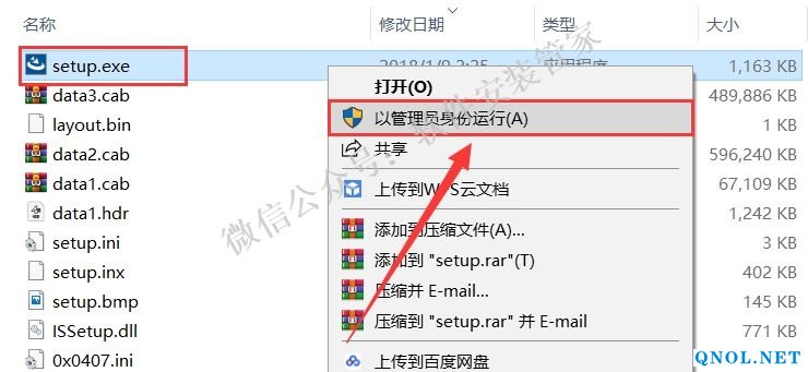 4.选中【setup.exe】可执行文件,鼠标右击选择【以管理员身份运行】。