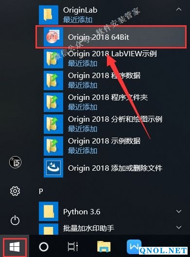 20.在开始菜单找到【Origin 2018 64Bit】,鼠标点住该图标往桌面拖动即可创建桌面快捷方式。