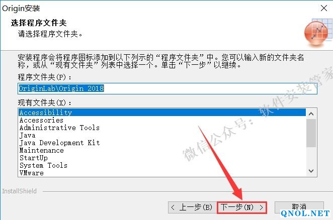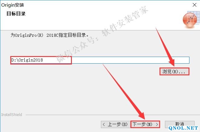 11.点击【浏览】更改软件的安装目录,建议安装在除C盘之外的磁盘,可在D盘或者其他盘新建一个【Origin2018】文件夹,点击【下一步】。