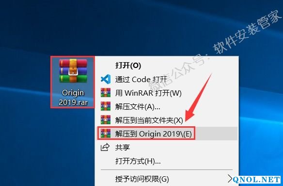 1.鼠标右击【Origin 2019】压缩包选择【解压到Origin 2019】。