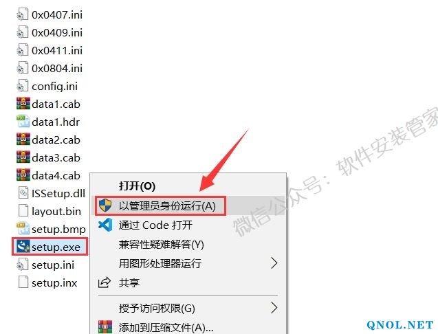 4.鼠标右击【setup.exe】选择【以管理员身份运行】。