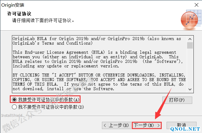6.选择【我接受许可协议中的条款】,然后点击【下一步】。