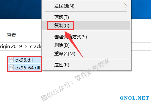 20.全选【crack】文件夹中的所有内容,然后鼠标右击选择【复制】。