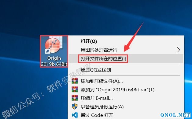 22.鼠标右击【Origin 2019b 64Bit】软件图标选择【打开文件所在的位置】。