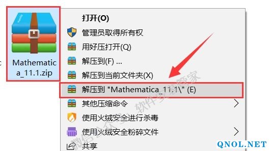 1.鼠标右击【Mathematica_11.1】压缩包选择【解压到Mathematica_11.1】。