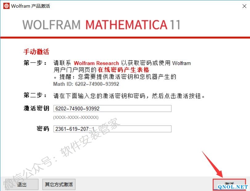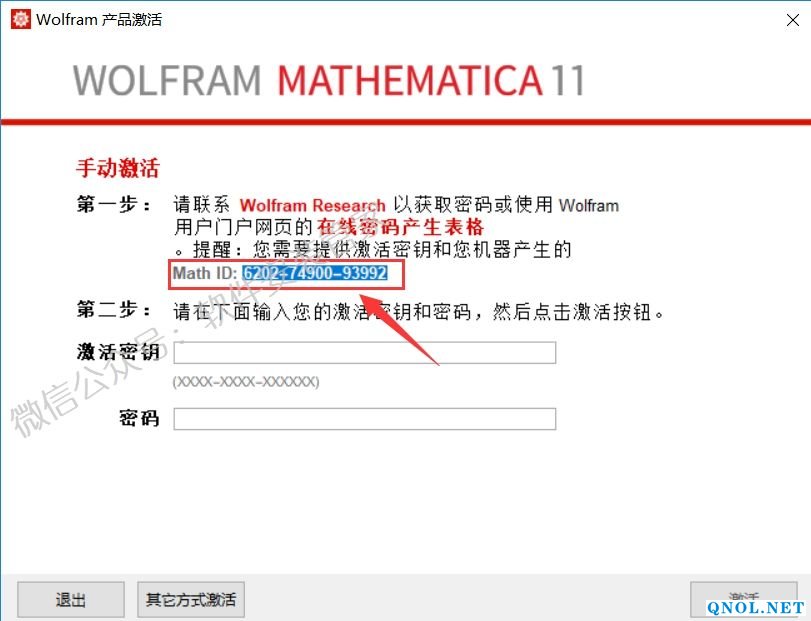 20.将步骤19中【第二个框中的MathID】和【Password】复制到激活界面对应位置(复制使用快捷键Ctrl+C,粘贴使用快捷键Ctrl+V)。