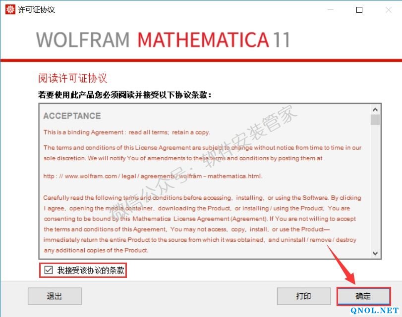 22.勾选【我接受该协议的条款】然后点击【确定】。