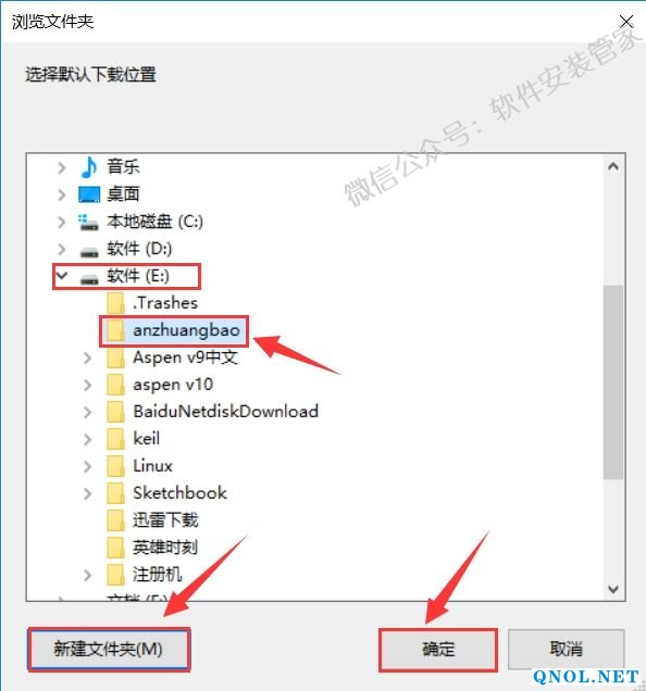 5.建议解压到除C盘之外的其它磁盘,可以在E盘或者其它盘新建一个【anzhuangbao】文件夹,然后点击【确定】。
