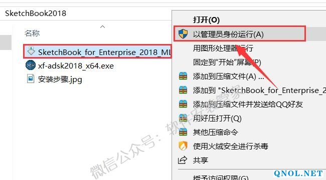 3.鼠标右击【SketchBook_for_Enterprise_2018_ML_Win_64bit_sfx.sfx】选择【以管理员身份运行】。