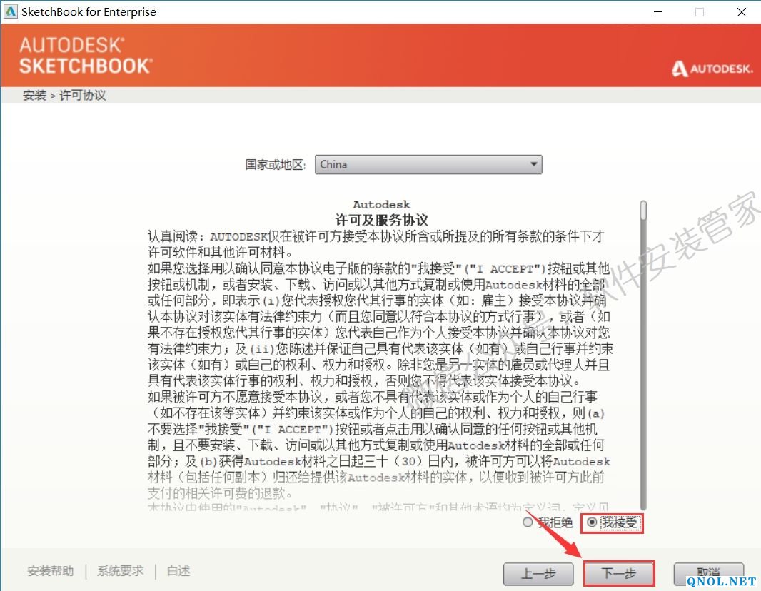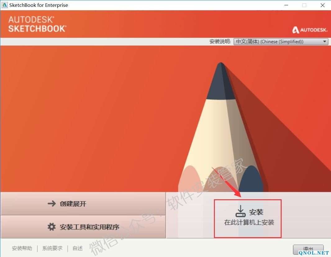9.点击【浏览】更改软件的安装路径,建议安装在除C盘之外的其它磁盘,可以在D盘或其它磁盘新建一个【SketchBook2018】文件夹,然后点击【安装】。