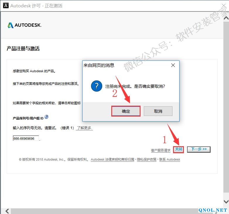 17.输入序列号:【666-69696969】与产品密钥:【871J1】,然后点击【下一步】。(请不要关闭此界面)