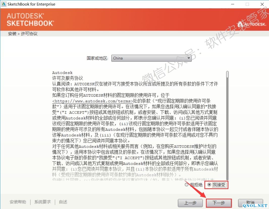 8.选择【我接受】然后点击【下一步】。