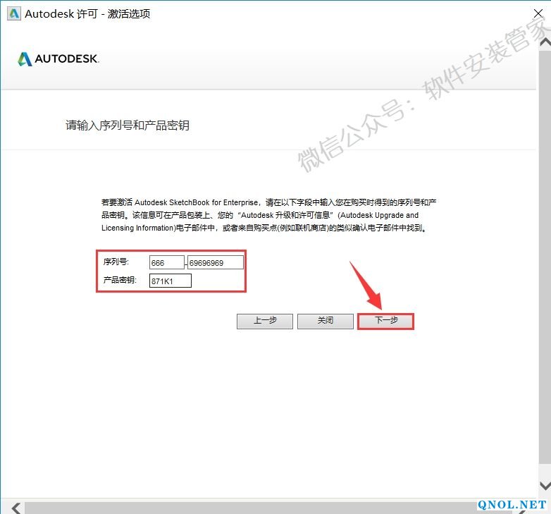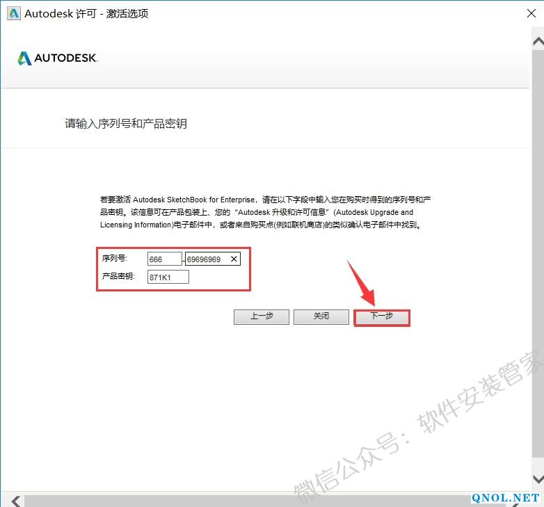 19.输入序列号:【666-69696969】与产品密钥:【871K1】,然后点击【下一步】。(请不要关闭此界面)