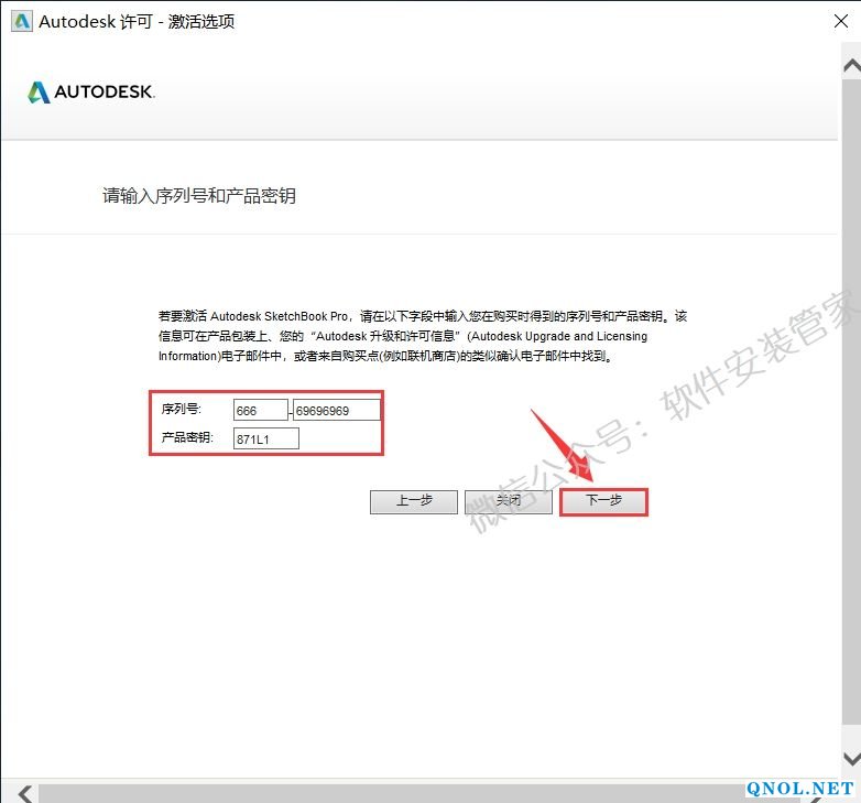 14.输入序列号:【666-69696969】与产品密钥:【871L1】,然后点击【下一步】。