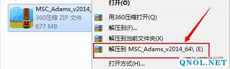1、右击软件压缩包,选择解压到“MSC_ADAMS_v2014_64”