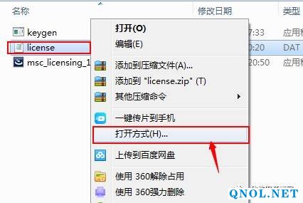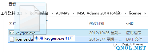 12、选择license按住鼠标左键,将license.dat拖到keygen.exe上。