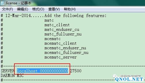 9、返回用记事本打开的“license”的文本,并在文本中找到“localhost 000000000000”。