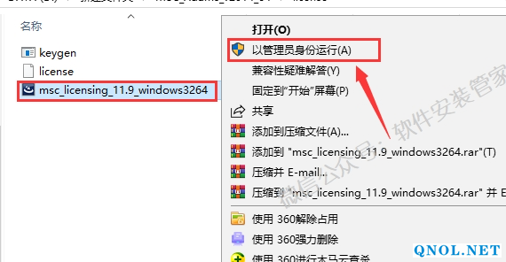 13、鼠标右击“msc_licensing_11.9_windows3264”选择“以管理员身份运行”。