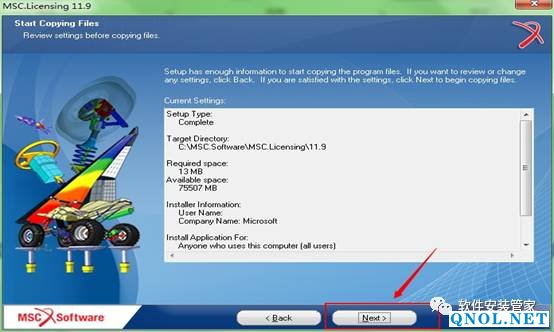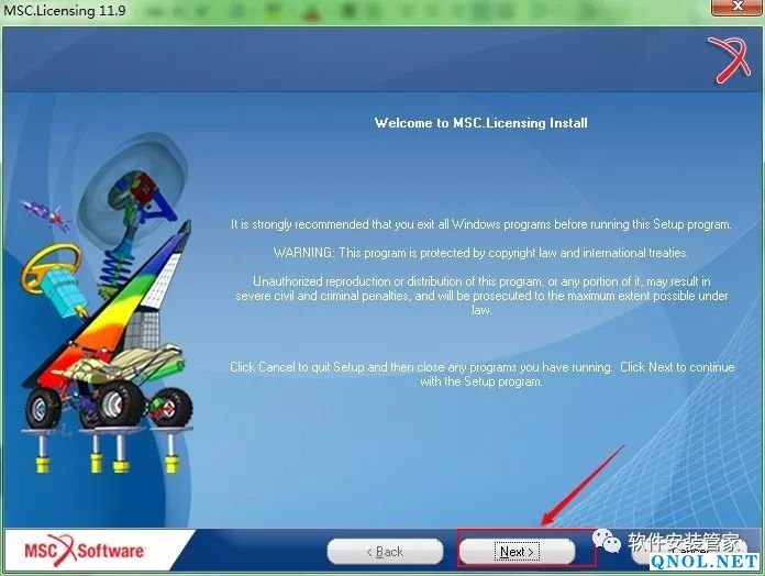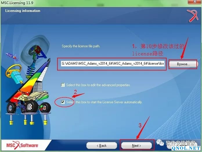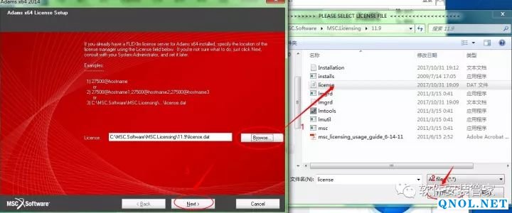 30、安装完成后会弹出以下界面,点击“Browse”选择前面(第17步)生成的新许可文件license.dat,路径C:\MSC.Software\MSC.Licensing\11.9\license.dat,然后点击Next。