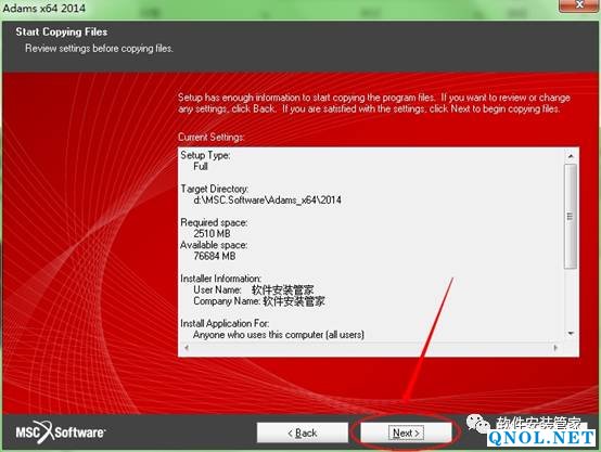 27、选择安装模式和安装目录,点击“FUll”,然后点击“Browse”更改安装路径,建议安装到除C盘的以外的其他磁盘,可在D盘新建一个Adams2014文件夹,然后点击Next。