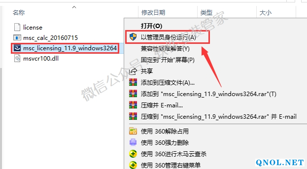 7、在“MAGNiTUDE”文件夹中鼠标右击“msc_licensing_11.9_windows3264”选择“以管理员身份运行”。