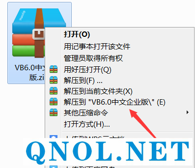 1.右击软件压缩包,选择解压到“VB6.0”