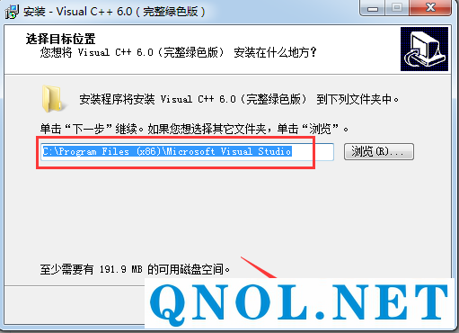 5.选择安装目录,默认安装在C:\Program Files (x86)\Microsoft Visual Studio(建议安装在除C盘以外的磁盘上,可在D盘新建文件夹VC6.0)点击下一步