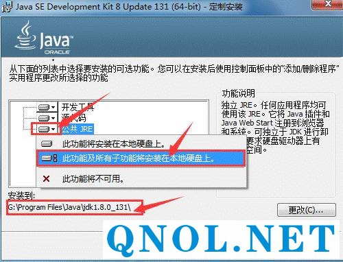 3.点击“公共JRE”,选择“此功能及所有子功能将安装在本地硬盘上”。此软件为了好调用环境,不要更改安装路径。