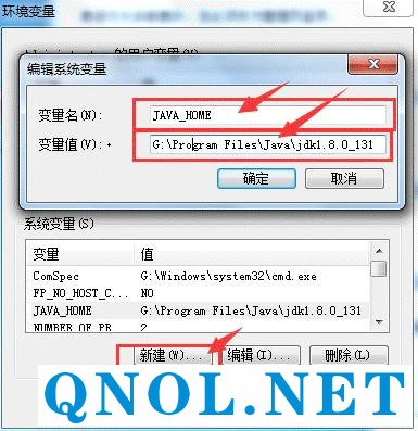 11.点击“新建”。变量名输入“JAVA_HOME”,变量值输入JAVA软件安装路径。步骤:第三步处的路径。说明:双引号不要输入或复制到。
