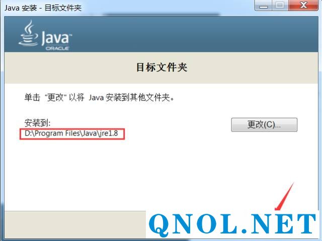 5.建议在D:\Program Files\Java文件夹下新建一个文件夹jre1.8(因为我之前选择安装到D盘的),如果你之前安装到其它盘,你可在其它盘Program Files\Java文件夹下新建一个文件夹jre1.8。然后点击更改选择刚才新建的jre1.8文件夹,再点击下一步。