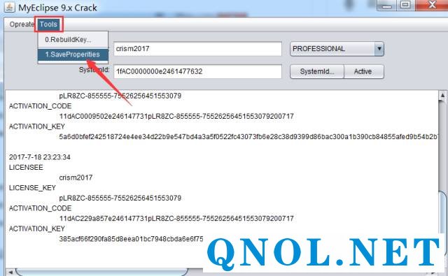 14.Usercode输入:crism2017,然后鼠标双击Systemld,最后点击Active后可以看见激活信息了。再点击Tools中的SaveProperities.