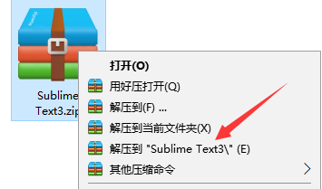 1.选中【Sublime Text3】压缩包,鼠标右击选择【解压到Sublime Text3】。