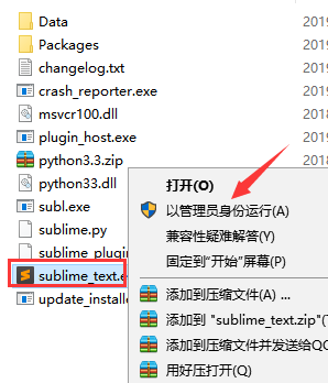 3.选中【sublime_text】可执行文件,鼠标右击选择【以管理员身份运行】。