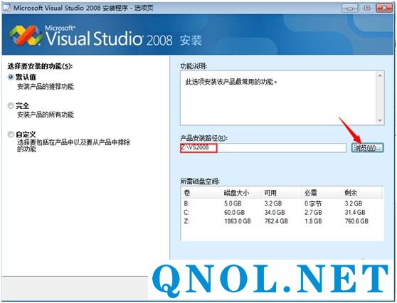 9、点击预览,选择安装路径,建议安装在除C盘以外的其它磁盘,可以在D盘或者其它盘创建一个VS2008文件夹,然后点击安装。