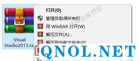 2.鼠标右击软件压缩包,选择解压到【Visual Studio2013】。