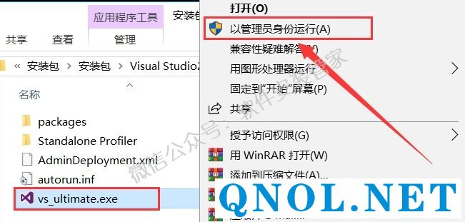 5.选中【vs_ultimate】后,鼠标右击选择【以管理员身份运行】。
