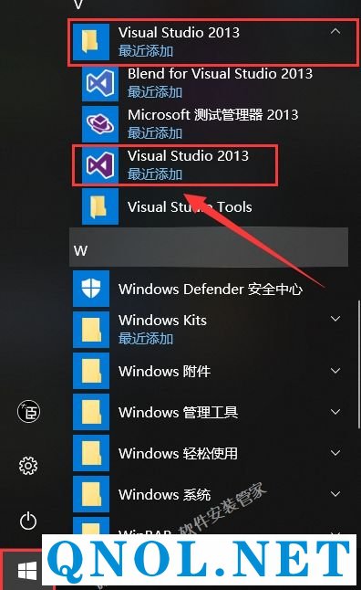 16.关闭并重启软件,点击左下角的菜单栏,在菜单栏中找到并打开【Visual Studio 2013】用鼠标点住【Visual Studio2013】不放往桌面上拖动即可创建快捷方式。