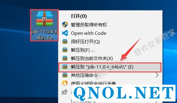 1.鼠标右击【jdk-11.0.4_64bit】压缩包选择【解压到jdk-11.0.4_64bit】。