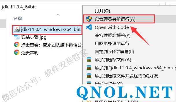 3.鼠标右击【jdk-11.0.4_windows-x64_bin】选择【以管理员身份运行】。
