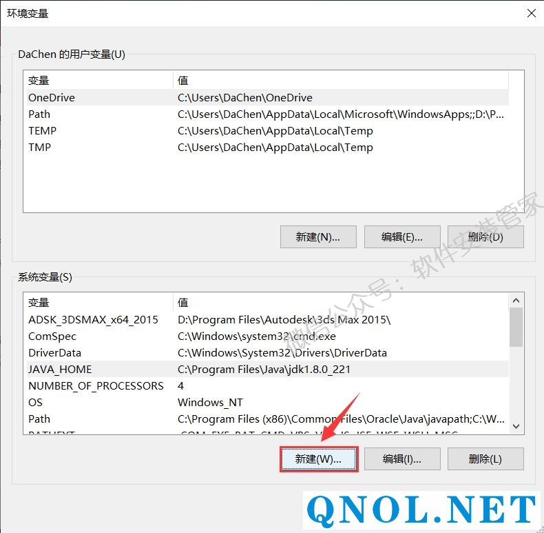 13.变量名输入【JAVA_HOME】,在变量值栏中使用快捷键Ctrl+V粘贴第8步中复制的jdk的路径,然后点击【确定】。