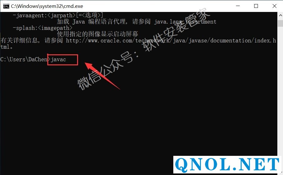 26.输入【javac】然后按键盘上面的【Enter】键。