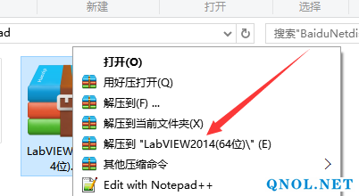 1、右击软件压缩包,选择解压到LabVIEW2014。