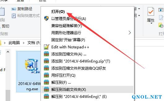 2、右键选择打开2014LV-64WinEng.exe文件。