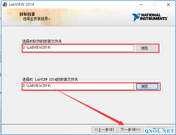 9、点击浏览更改安装路径,建议安装到除C盘以外的磁盘,可在D盘或者其他盘创建一个LabVIEW2014文件夹。然后点击下一步。